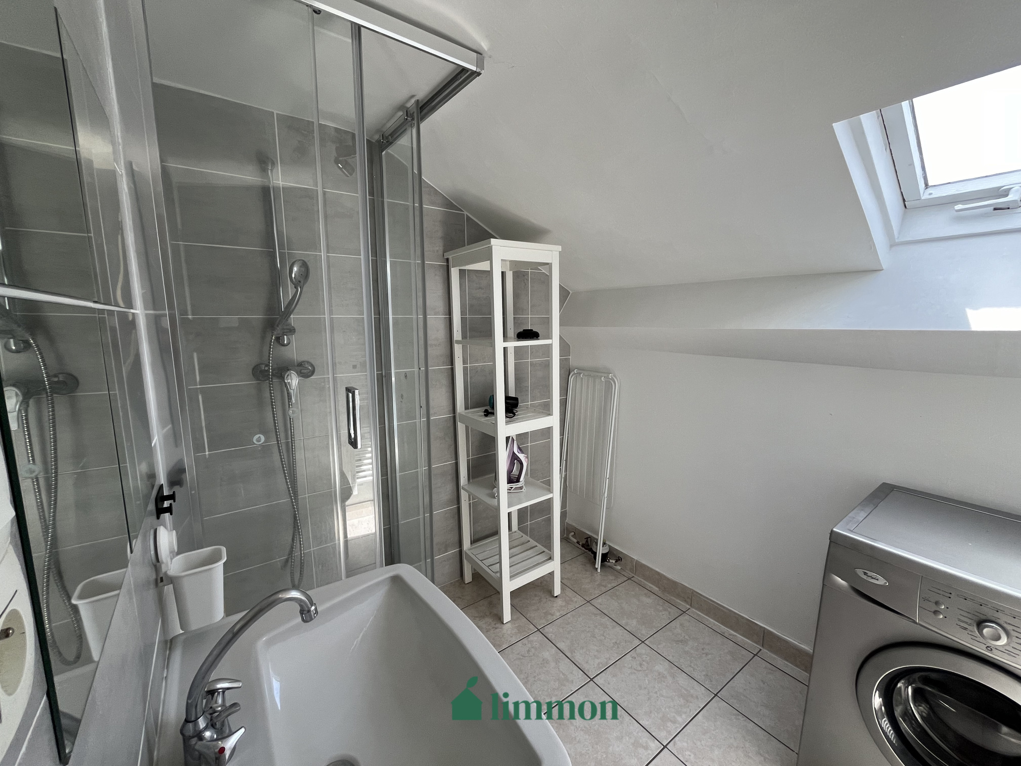 Ce très lumineux studio meublé au 1er étage de 27 m² loi carrez, 30 m² au sol est composé d'une pièce à vivre et d'une salle d'eau.