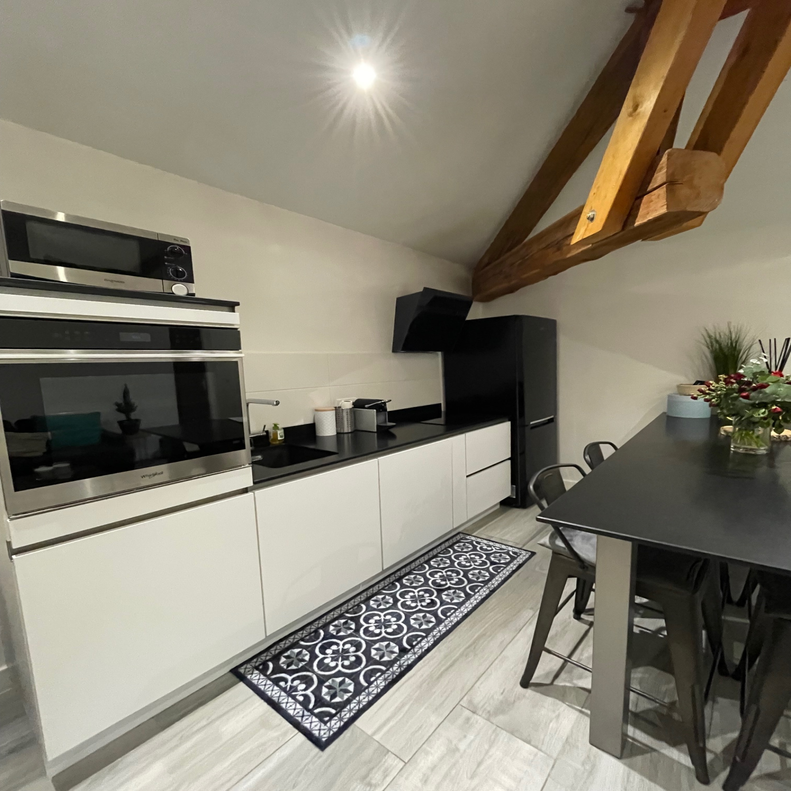 Saint Cyr au Mont d'Or - Au sein d'une propriété de charme fermée et sécurisée, coup de coeur assuré pour cet appartement en dernier étage entièrement rénové de 45,16m2 carrez (60,86m2 surface utile) comprenant une entrée, un séjour avec cuisine ouverte et équipée, une chambre avec dressing, une salle de douche et WC. En duplex, un bel espace pour une 2ème chambre avec rangements ou un espace bureau.